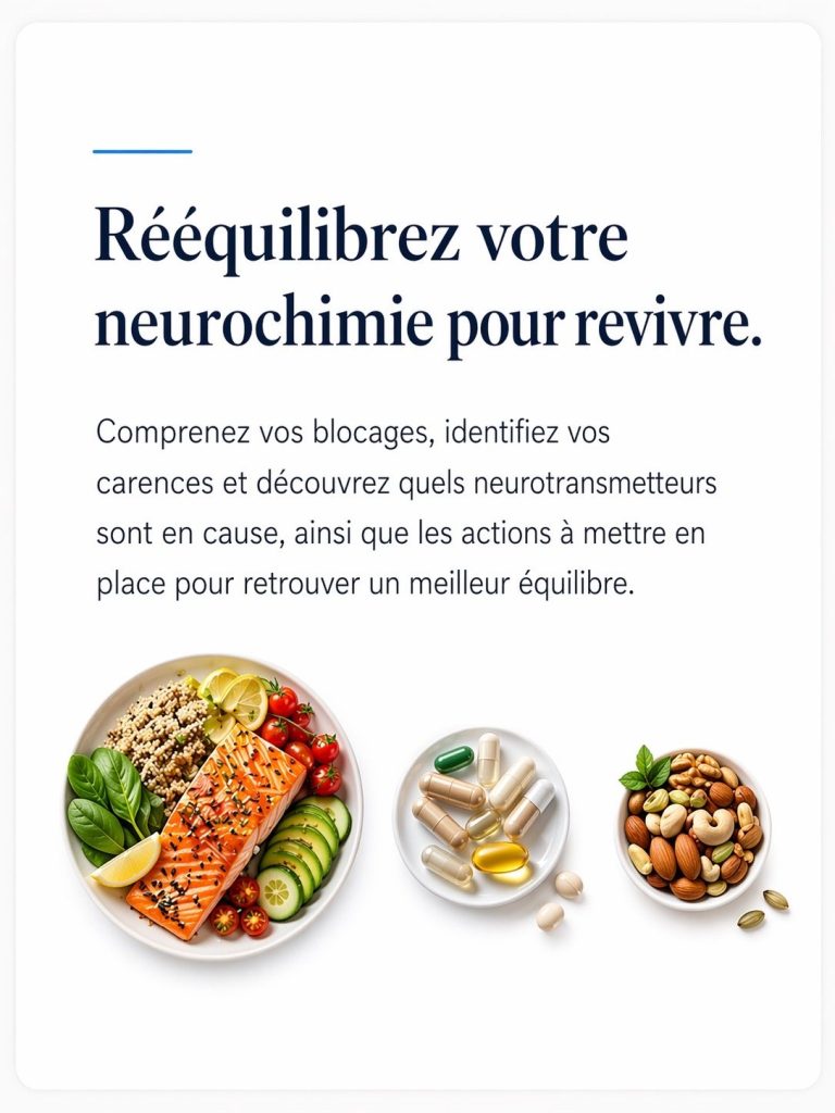 Le stress du boulot me bouffait, je dormais mal et j’étais irritable pour un rien. Le résultat a révélé une carence en sérotonine et une dominance acétylcholine. J’ai pris du 5-HTP et du magnésium le soir. Depuis mes nuits sont plus profondes et je gère les réunions sans m’énerver. Franchement pour 19 € ça vaut largement le coup.